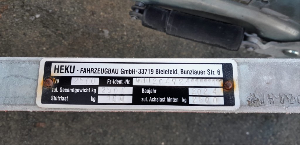 | Trailer: | HEKU Tandem-Trailer 2500, Bj. 2024, EZ 12/2025, TÜV 12/2027 |